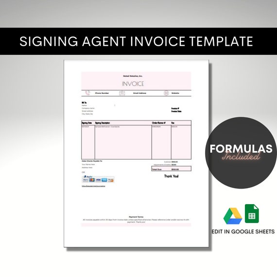 Notary Invoice Template Pink Invoice For Notary Public Etsy Canada